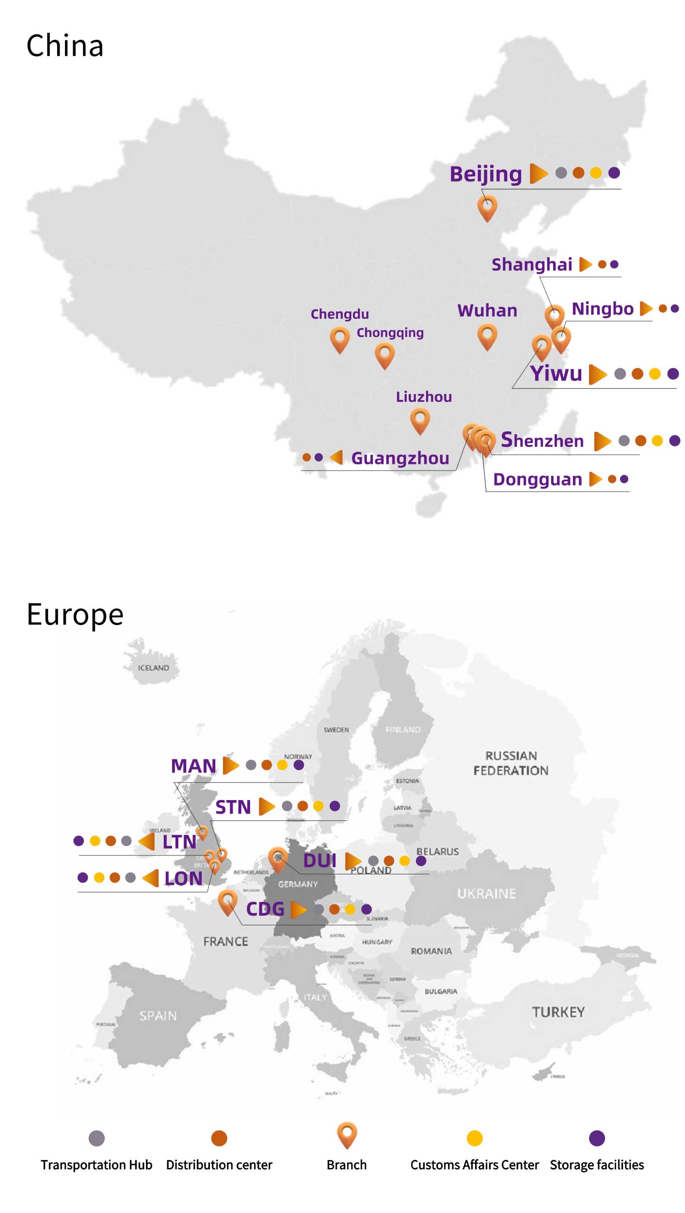 Pôle de transport : région Chine 4, région Europe 5